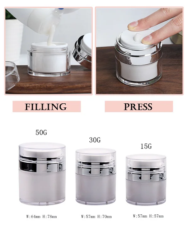 Luxury Empty Clear Frosted Plastic Acrylic Cosmetic Jars 15g 30g 50g Double wall Vacuum Face Cream Airless Pump Jar With Lids