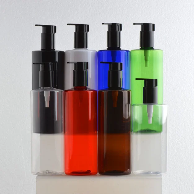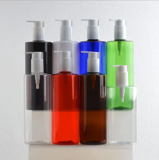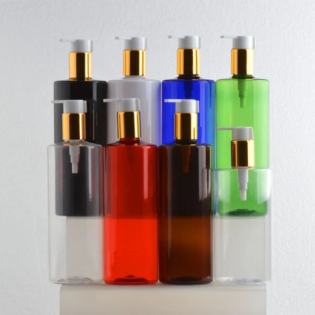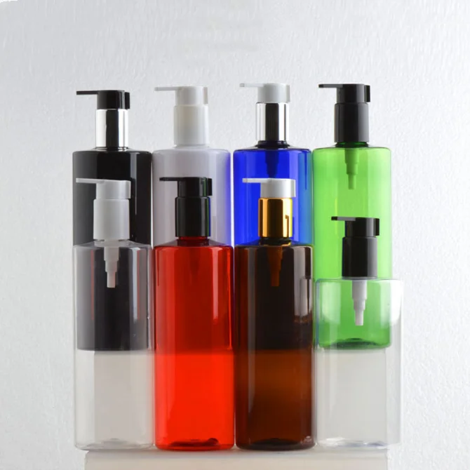 Luxury 300ml 500ml PET flat shoulder color lotion pump cosmetic plastic shampoo and hair conditioner shower gel packing bottles Price:¥USD0.5 Place of origin:GUANGZHOU