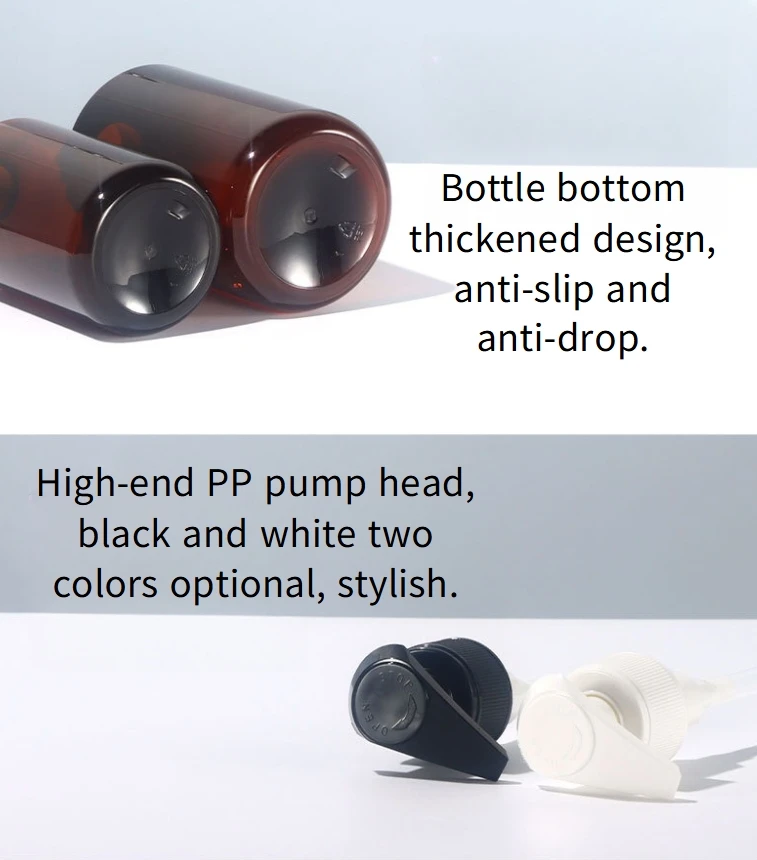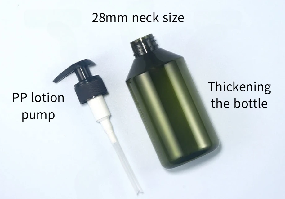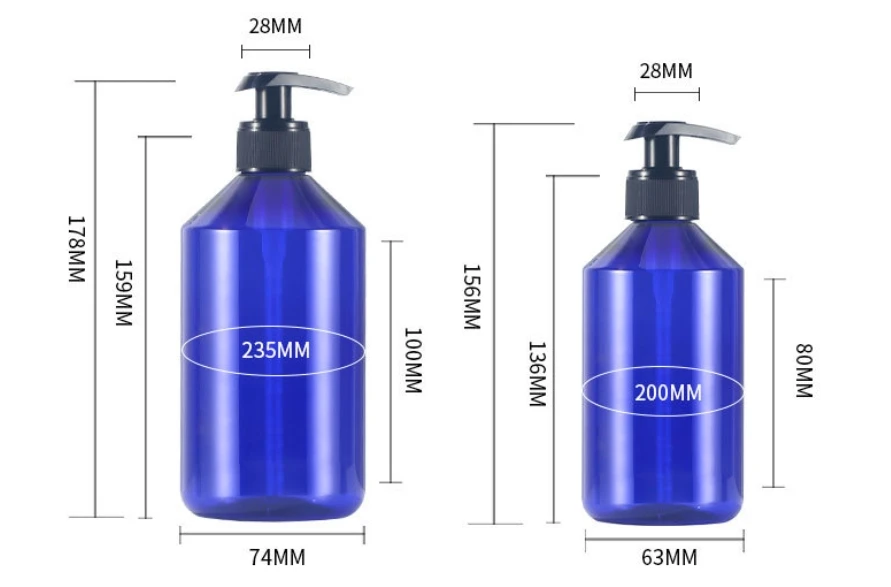 This PET lotion pump bottle made of thickened plastic has a capacity of 300ml 500ml and the dimensions are as follows.